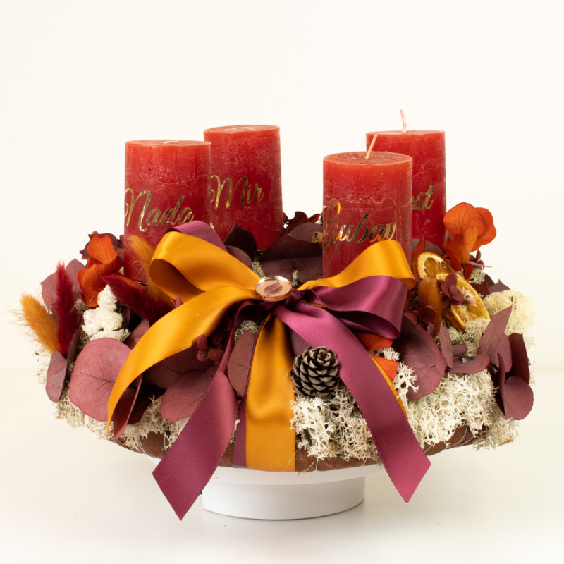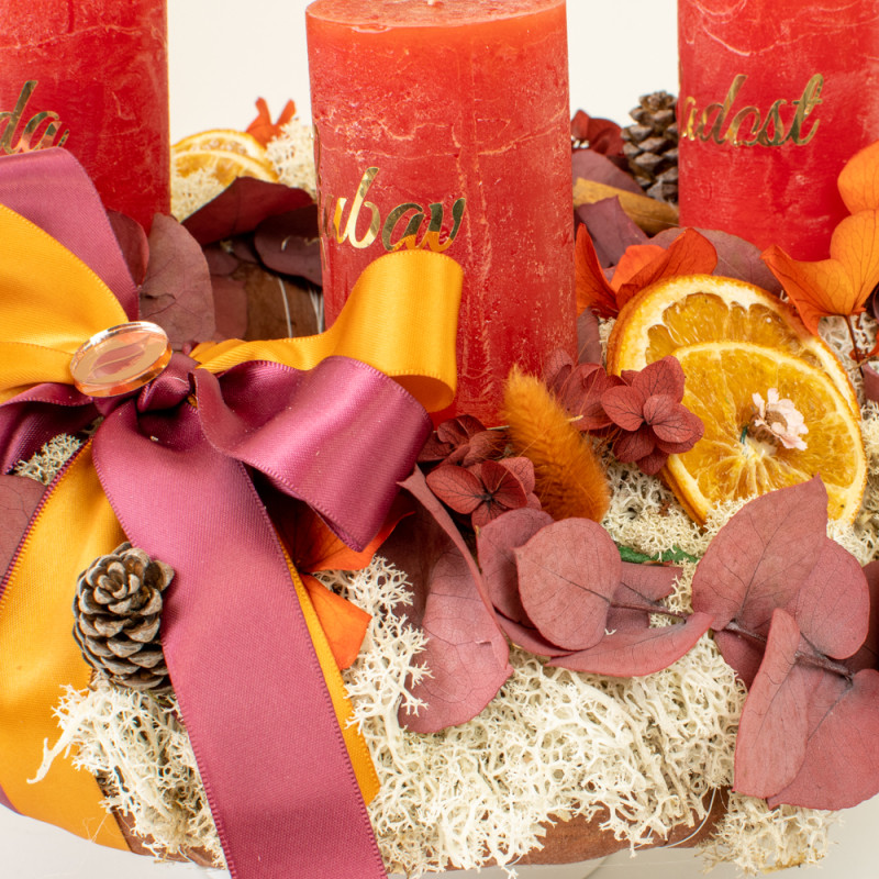 Unesite blagdansku toplinu i miris prirode u svoj dom uz adventski vijenac SANDEA – crvene svijeće, mahovina i suha naranča.