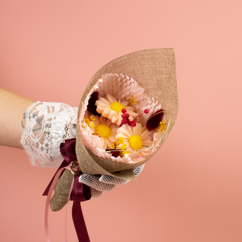 Osim što je dekorativan i mirisan, buket od voska margarete predstavlja i održivu alternativu svježem cvijeću. Njegova trajnost čini ga odličnim rješenjem za one koji žele uvijek imati cvijeće pri ruci, bez brige oko zalijevanja ili uvenuća. Voskani buket S savršeno pristaje u interijere modernog i rustikalnog stila, a zahvaljujući prirodnom mirisu Velvet Cream Peony, može se koristiti i kao prirodni osvježivač prostora. Upravo zbog te kombinacije funkcionalnosti i estetike, buket od voska margarete sve je češći izbor za darivanje i dugotrajnu dekoraciju.