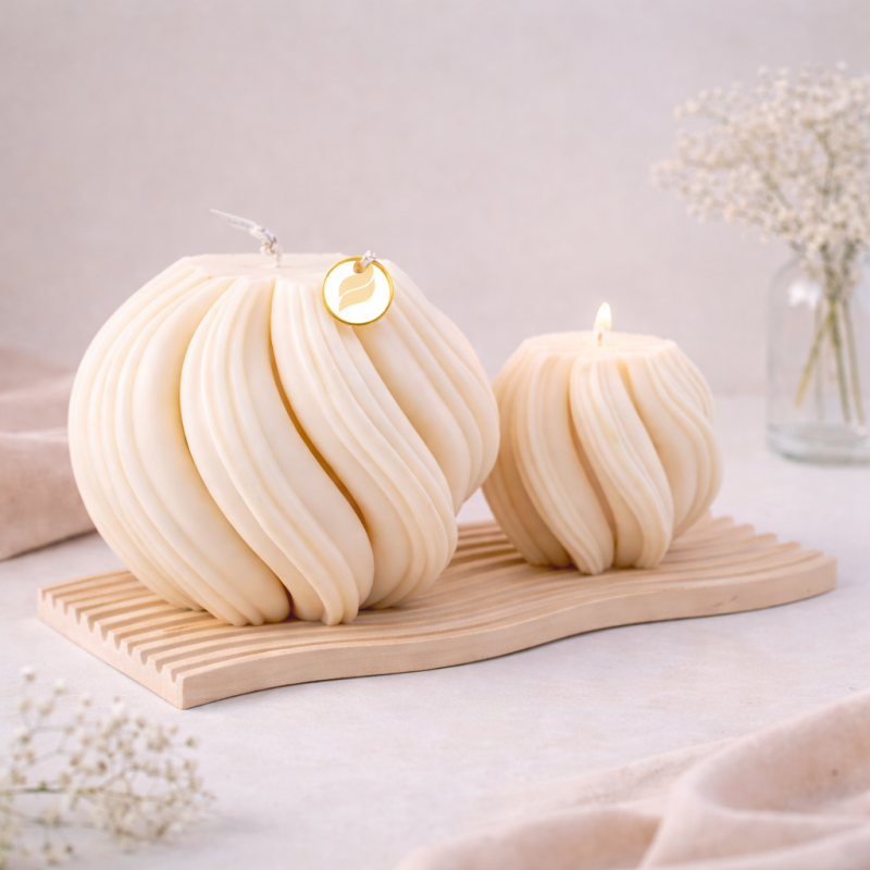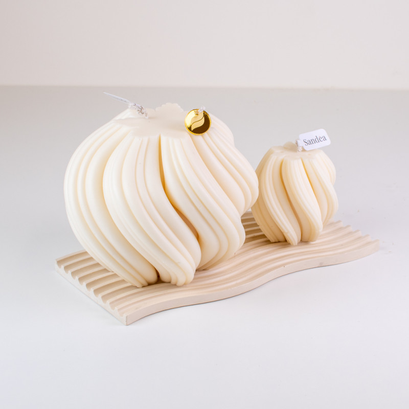 Valovite linije inspirirane su pokretom mora i lakoćom prirodnih formi — svaka svijeća ručno je izlivena, što je čini jedinstvenim umjetničkim djelom.
