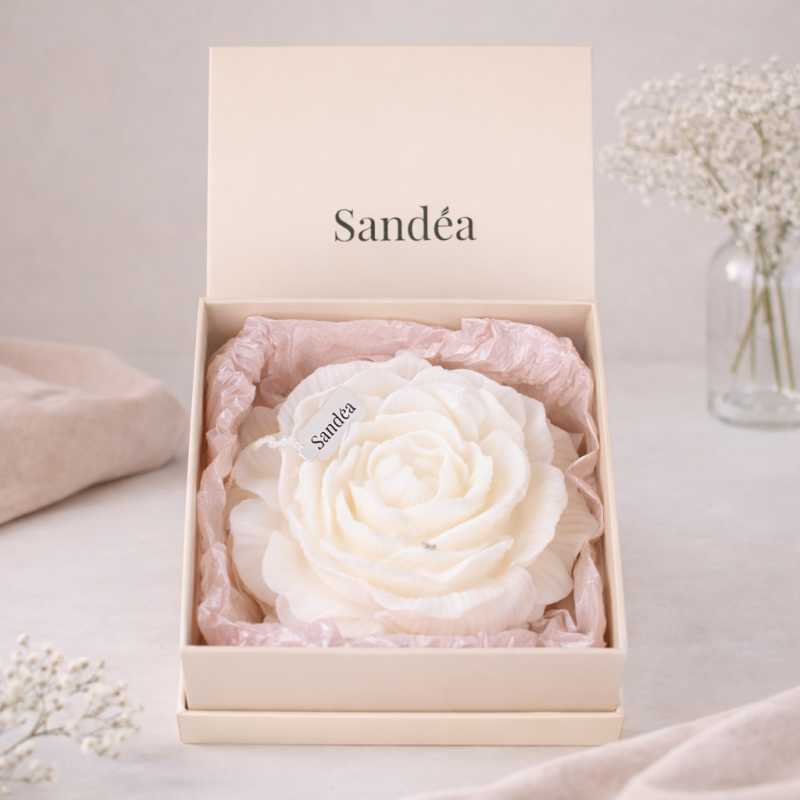Svaka svijeća oblikovana je ručno u oblik cvijeta božura – simbola ljepote, ljubavi i blagostanja. Idealna je za estete koji žele više od obične svijeće – žele dekoraciju s karakterom.
