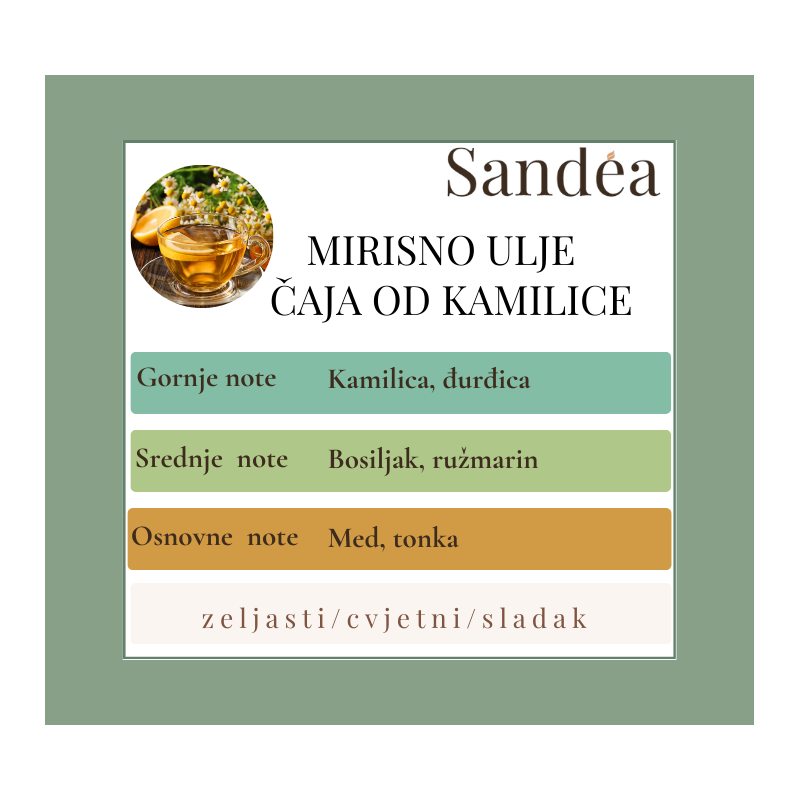Gornje note: kamilica i đurđica donose nježan cvjetni uvod, svjež i umirujući.