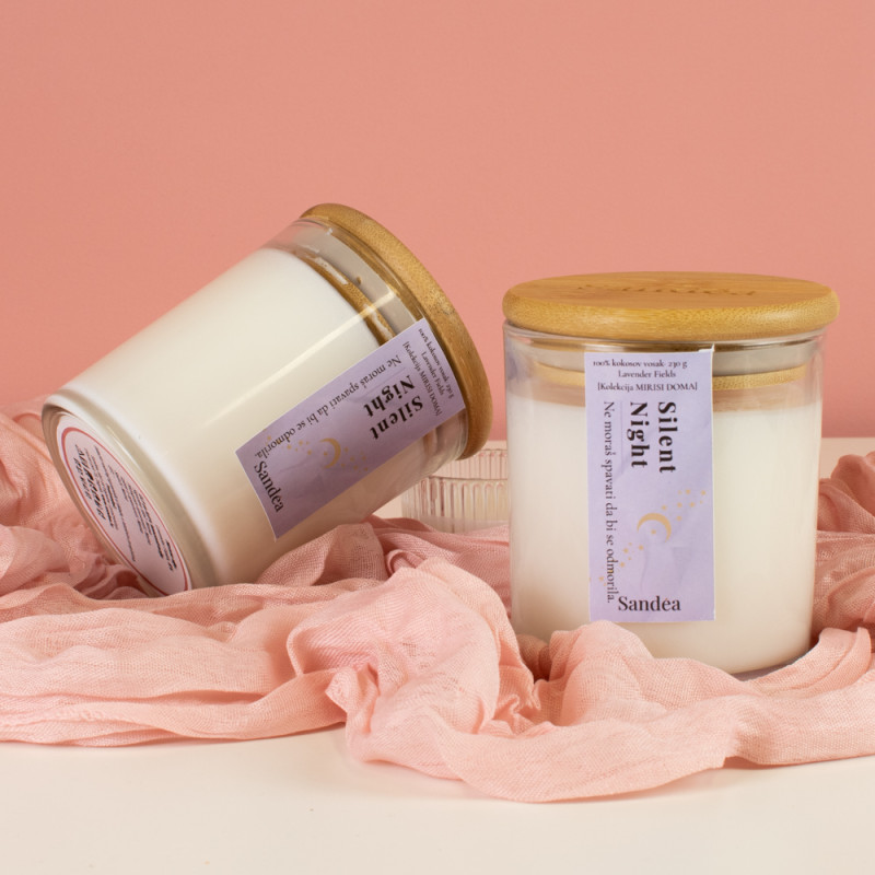 Silent Night svijeća Lavender Fields dolazi u elegantnom pakiranju i može biti jedinstven poklon za osobe koje cijene prirodne mirise i cozy atmosferu doma.