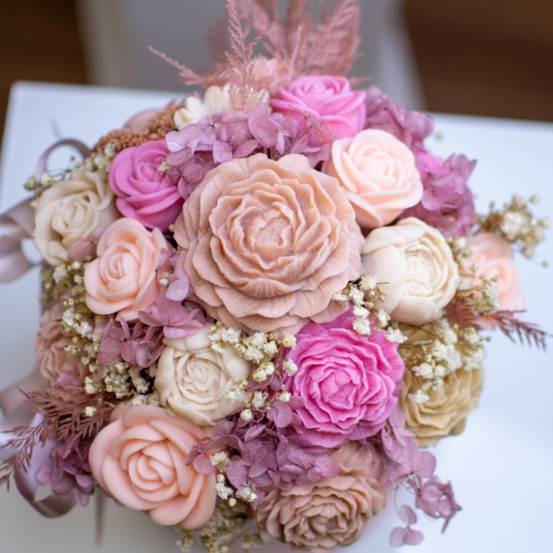 Cvjetovi su izrađeni od voska uljane repice i imaju nježan, cvjetni miris. Aranžman koji izradite može biti dekoracija za dom ili poklon.