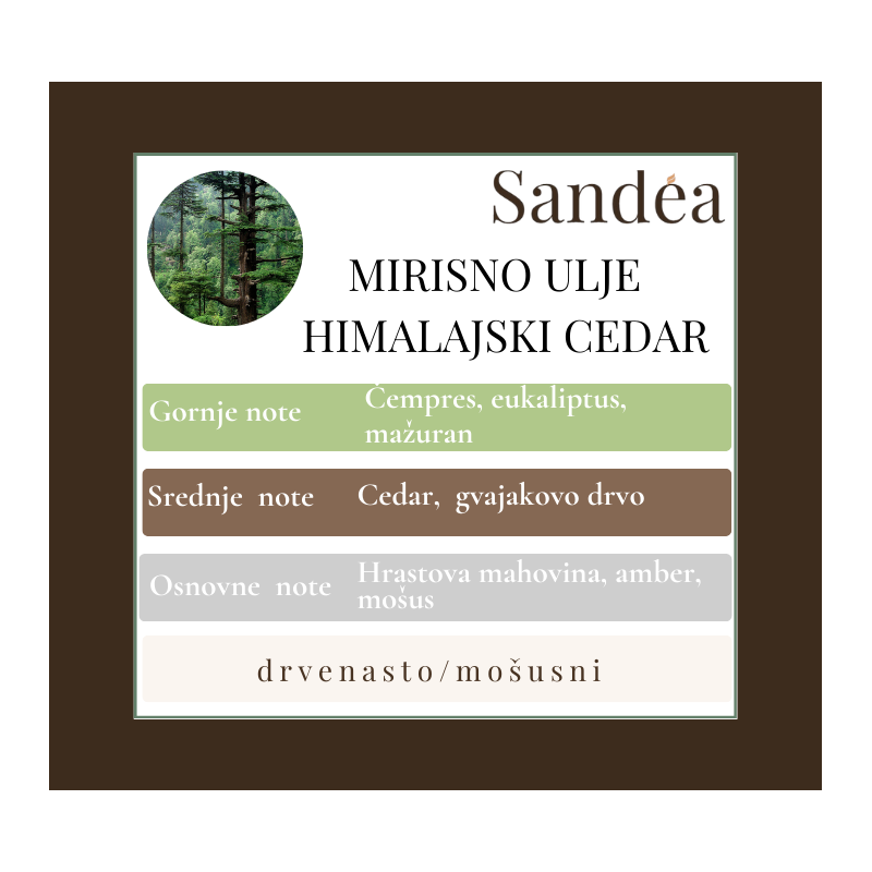 Drugi sloj čini miris himalajskog cedra. Njegova kombinacija drvenastih i svježih tonova predstavlja vertikalu i rast. Maslinasto zelena boja sloja simbolizira stabilnost i prirodnu ravnotežu. Ova faza mirisne svijeće tri sloja daje osjećaj da si u srcu šume – tamo gdje cedrovina širi snagu i životnu energiju.