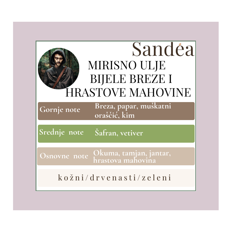 Prvi sloj svijeće donosi aromu bijele breze i hrastove mahovine. Profil mirisa je drvenasti, zemljani i mošusni, a boja tamno smeđa evocira korijenje, tlo i snagu zemlje. Ovaj sloj priziva prizemljenost i mir, podsjećajući na prvi dah šume pod stopalima. Svaka nota hrastove mahovine donosi osjećaj ukorijenjenosti i sigurnosti.