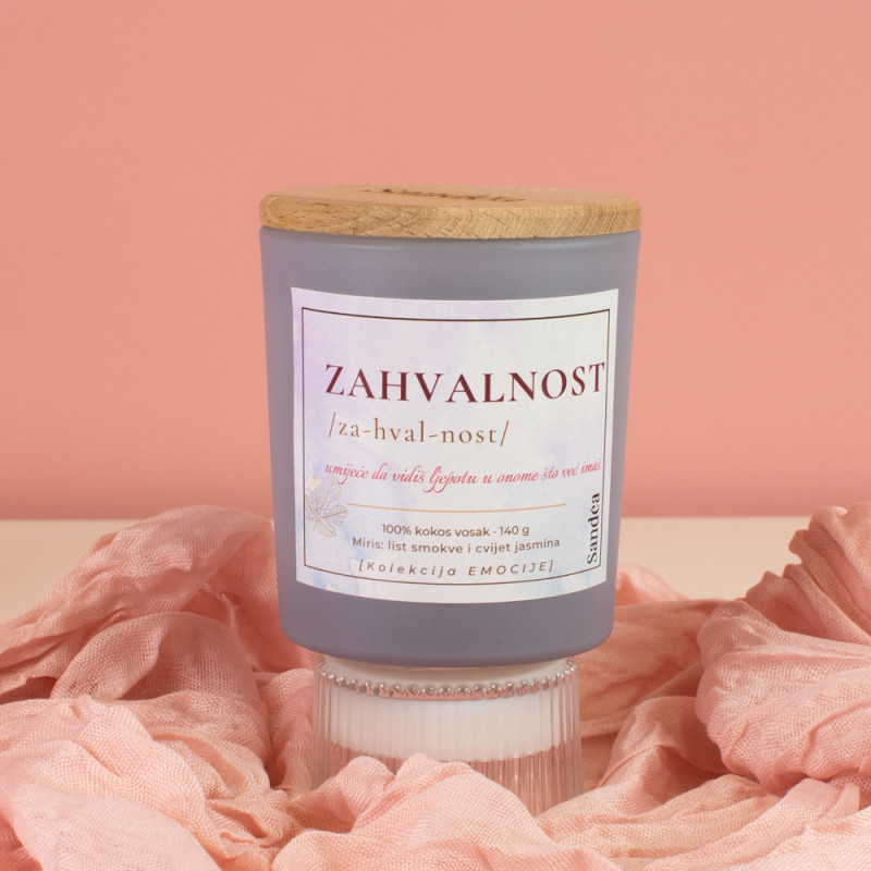 Zahvalnost svijeća posvećena je trenucima introspektive i tihe radosti. Ona nas podsjeća da sreća ne leži u onome što tek treba doći, već u onome što već jest. Sa svakim plamenom otvara prostor za zahvalnost – mirno, toplo svjetlo koje grije iznutra.